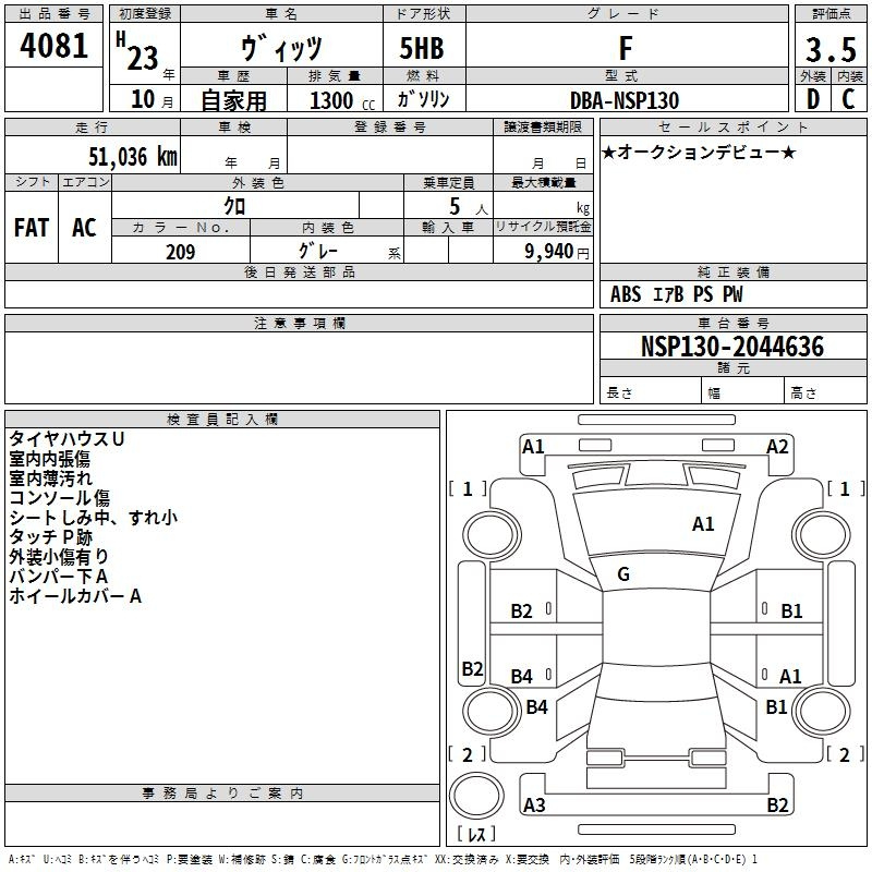 Toyota Vitz, 2011 года - Лот№4081 ★3.5