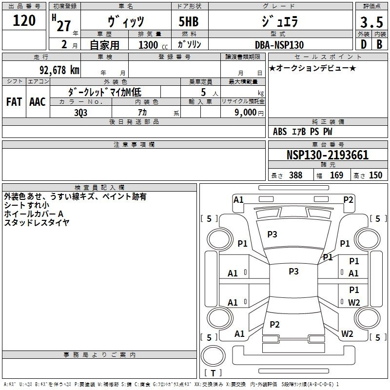 Toyota Vitz, 2015 года - Лот№120 ★3.5
