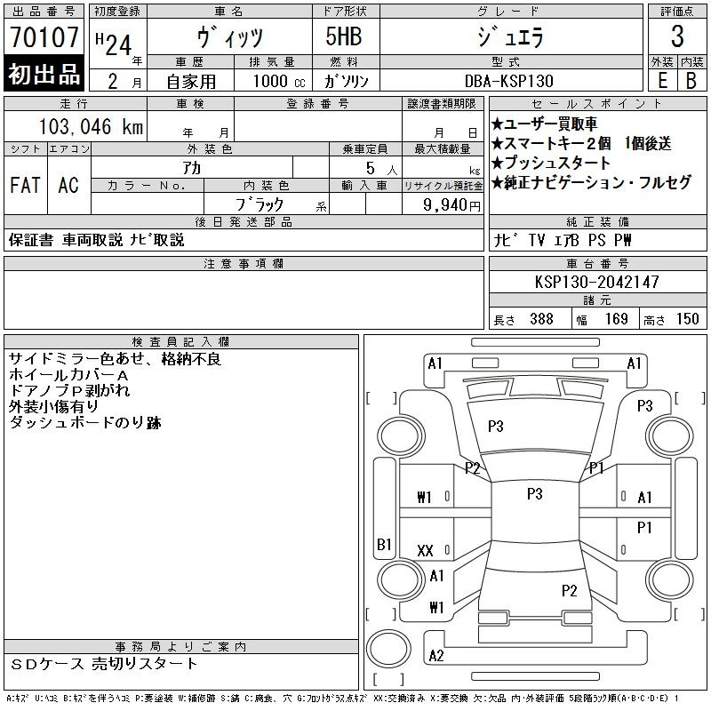 Toyota Vitz, 2012 года - Лот№70107 ★3