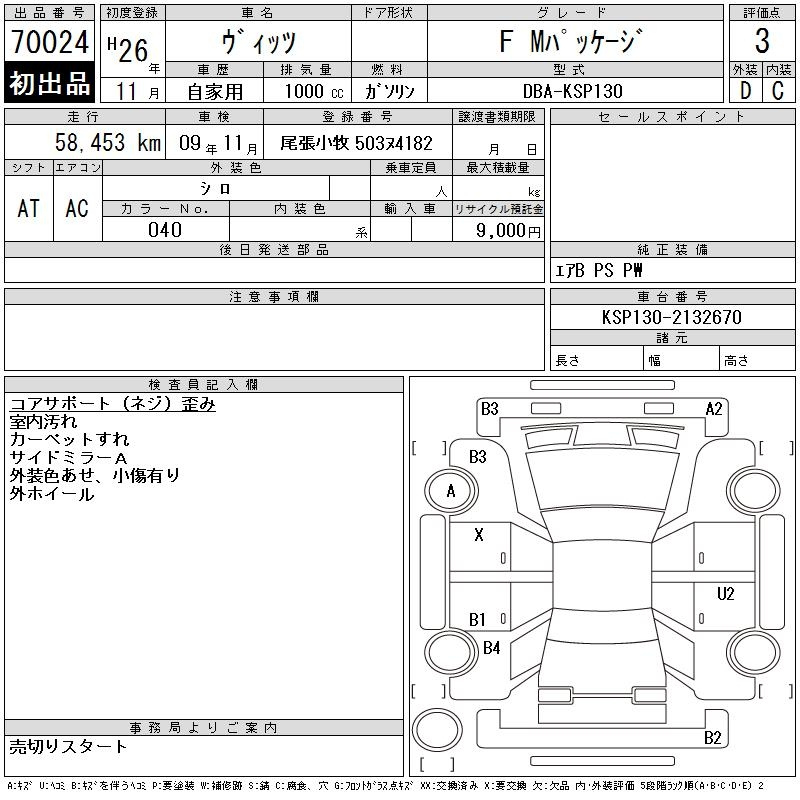 Toyota Vitz, 2014 года - Лот№70024 ★3
