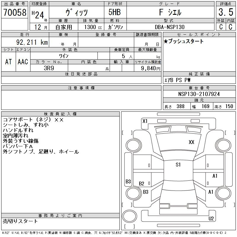 Toyota Vitz, 2012 года - Лот№70058 ★3.5