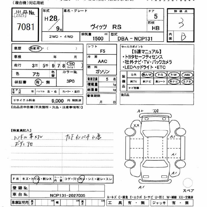 Toyota Vitz, 2016 года - Лот№7081 ★3