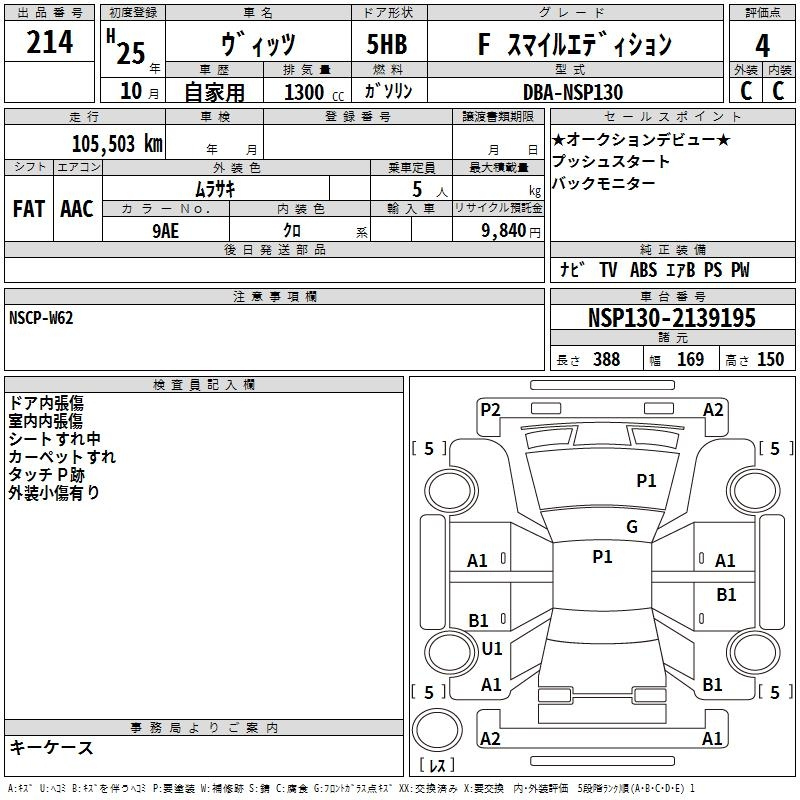 Toyota Vitz, 2013 года - Лот№214 ★4
