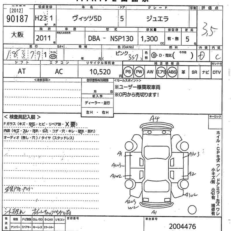 Toyota Vitz, 2011 года - Лот№90187 ★3.5
