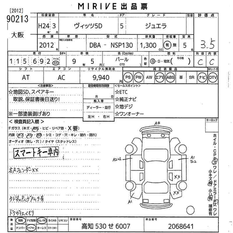 Toyota Vitz, 2012 года - Лот№90213 ★3.5