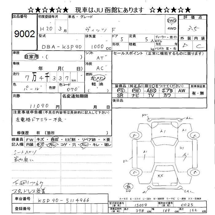 Toyota Vitz, 2008 года - Лот№9002 ★3.5