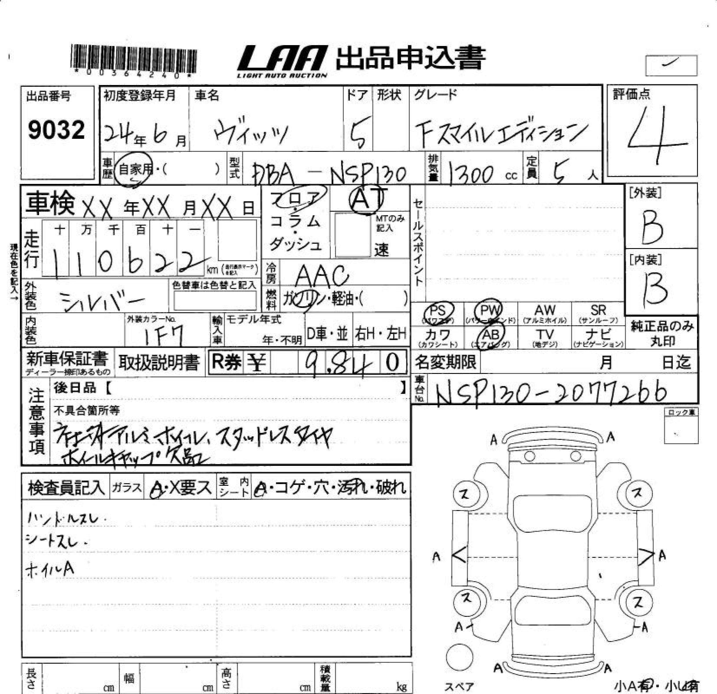 Toyota Vitz, 2012 года - Лот№9032 ★4