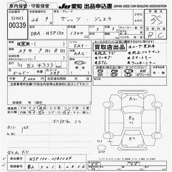 Toyota Vitz, 2014 года - Лот№339 ★3.5