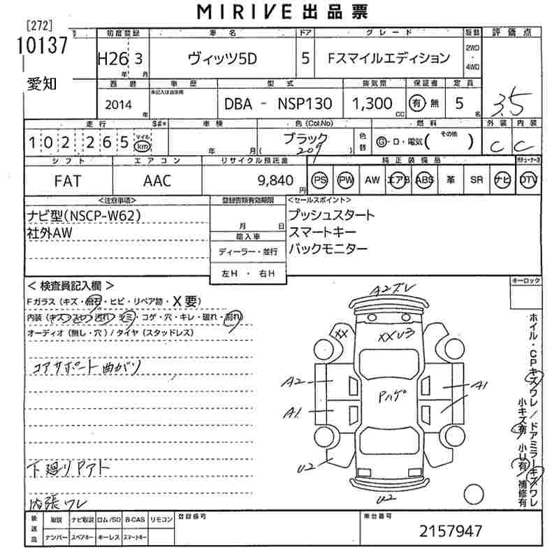 Toyota Vitz, 2014 года - Лот№10137 ★3.5