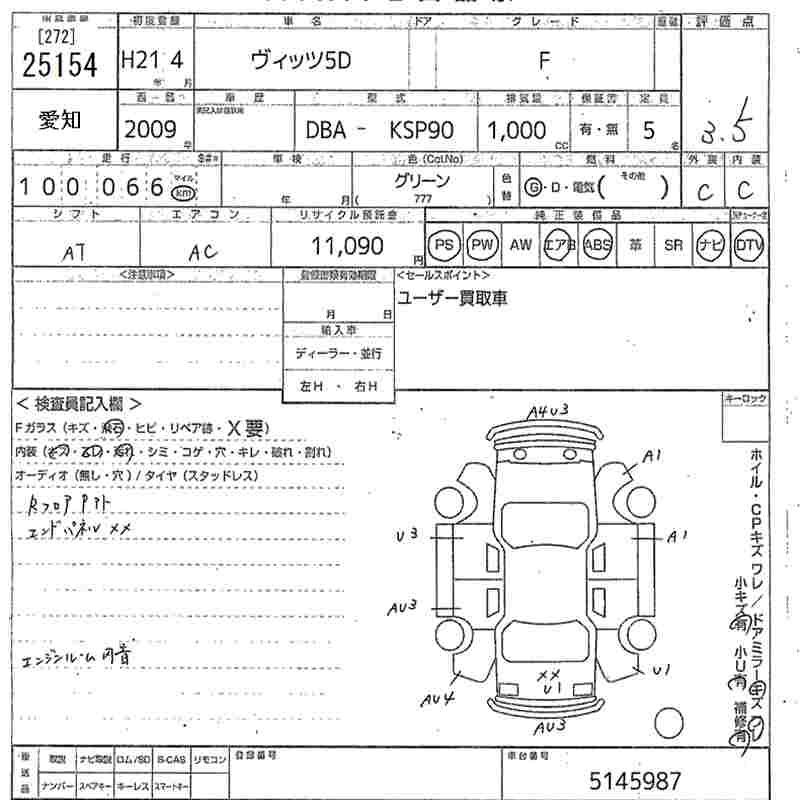 Toyota Vitz, 2009 года - Лот№25154 ★3.5