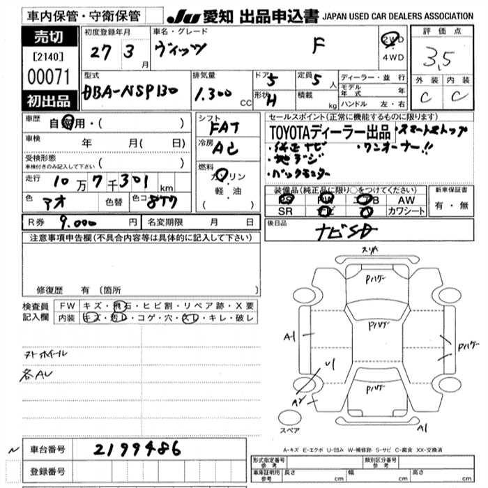 Toyota Vitz, 2015 года - Лот№71 ★3.5
