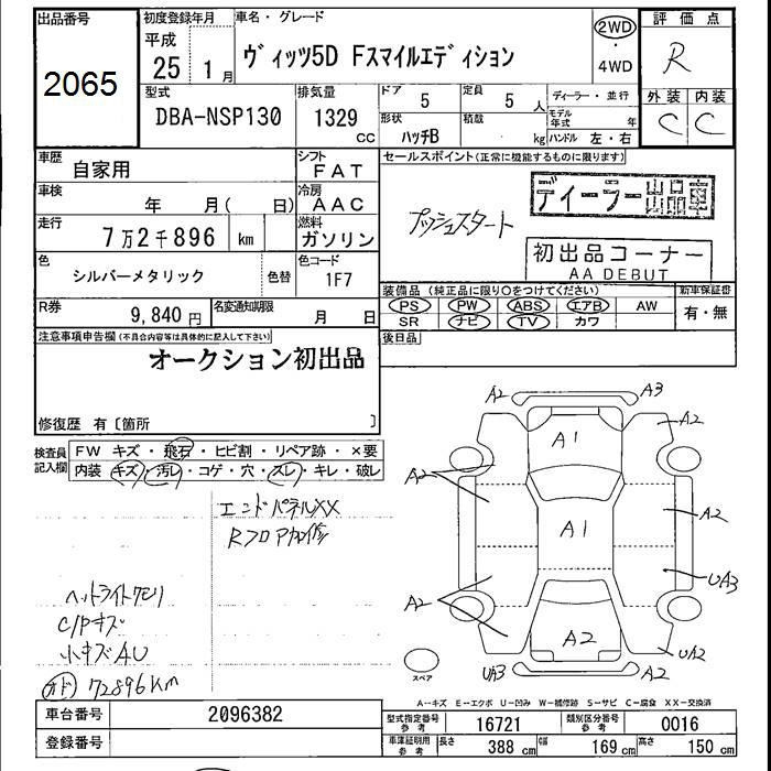 Toyota Vitz, 2013 года - Лот№2065 ★R