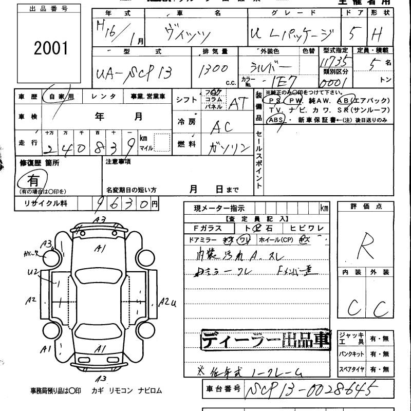 Toyota Vitz, 2004 года - Лот№2001 ★R