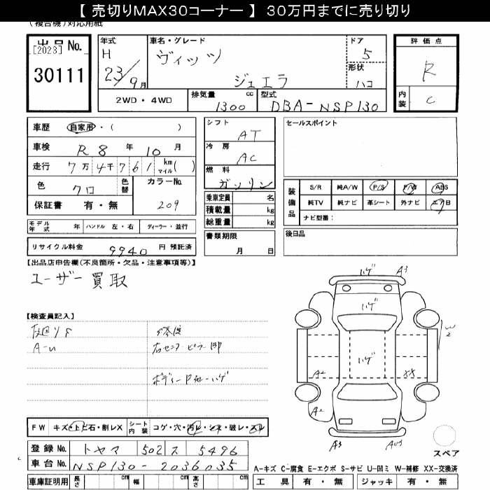 Toyota Vitz, 2011 года - Лот№30111 ★R