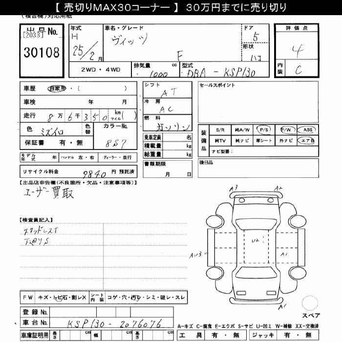 Toyota Vitz, 2013 года - Лот№30108 ★4