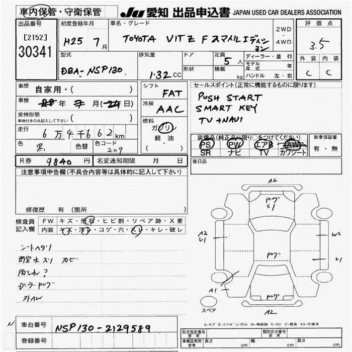 Toyota Vitz, 2013 года - Лот№30341 ★3.5