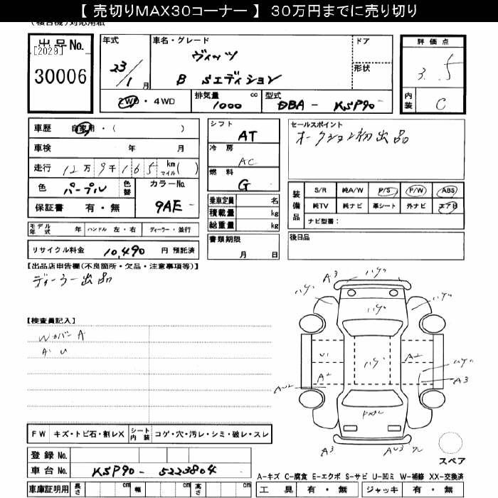 Toyota Vitz, 2011 года - Лот№30006 ★3.5