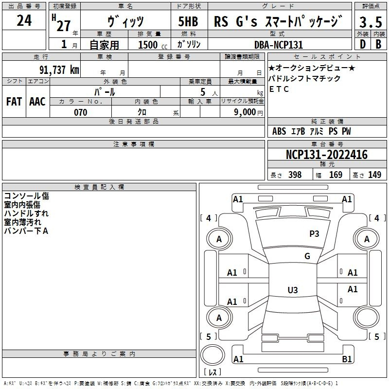 Toyota Vitz, 2015 года - Лот№24 ★3.5