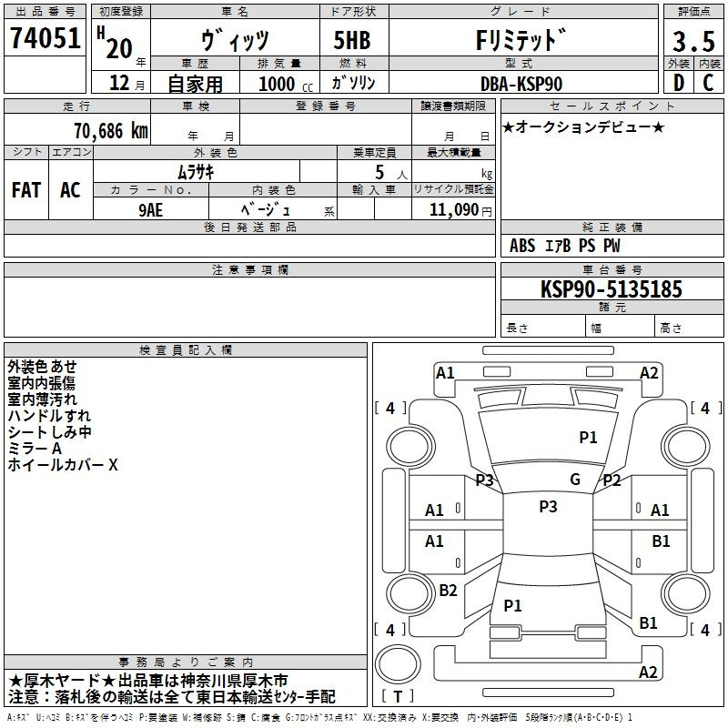 Toyota Vitz, 2008 года - Лот№74051 ★3.5
