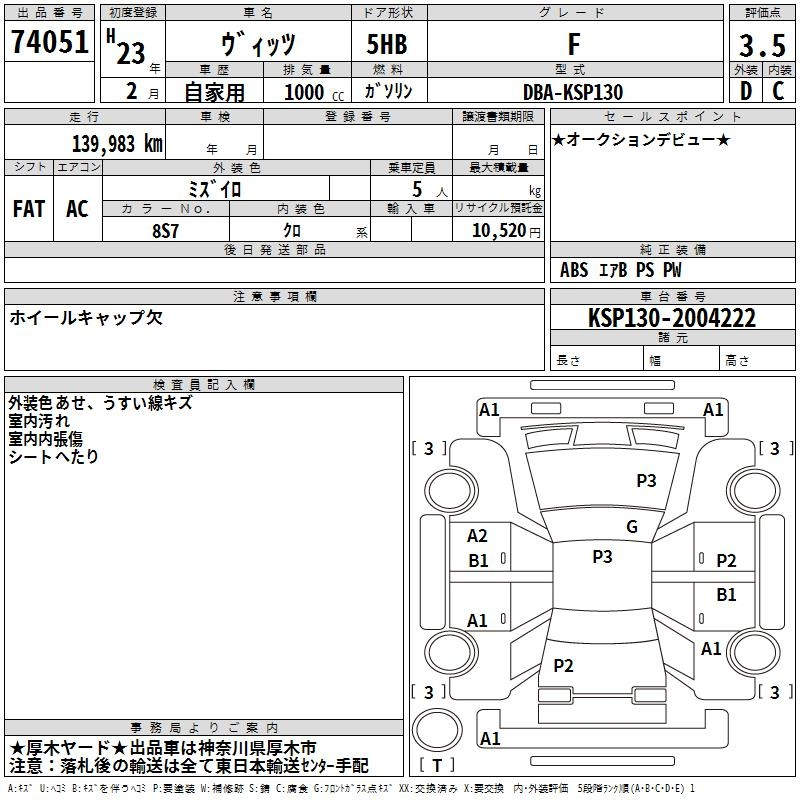 Toyota Vitz, 2011 года - Лот№74051 ★3.5