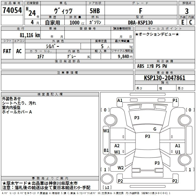 Toyota Vitz, 2012 года - Лот№74054 ★3