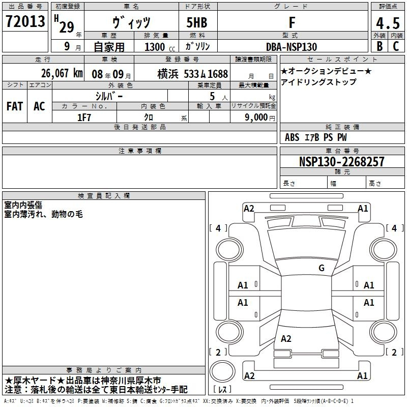 Toyota Vitz, 2017 года - Лот№72013 ★4.5
