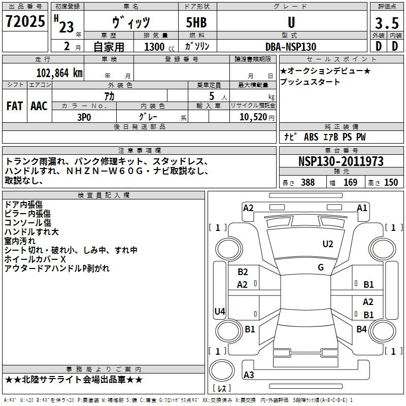 Toyota Vitz, 2011 года - Лот№72025 ★3.5
