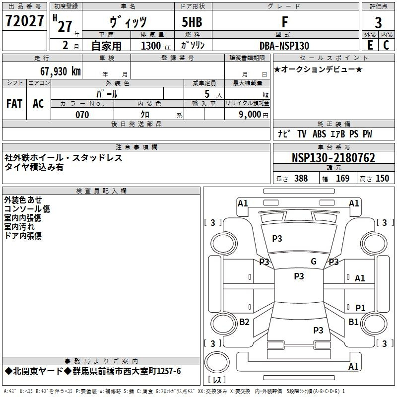 Toyota Vitz, 2015 года - Лот№72027 ★3