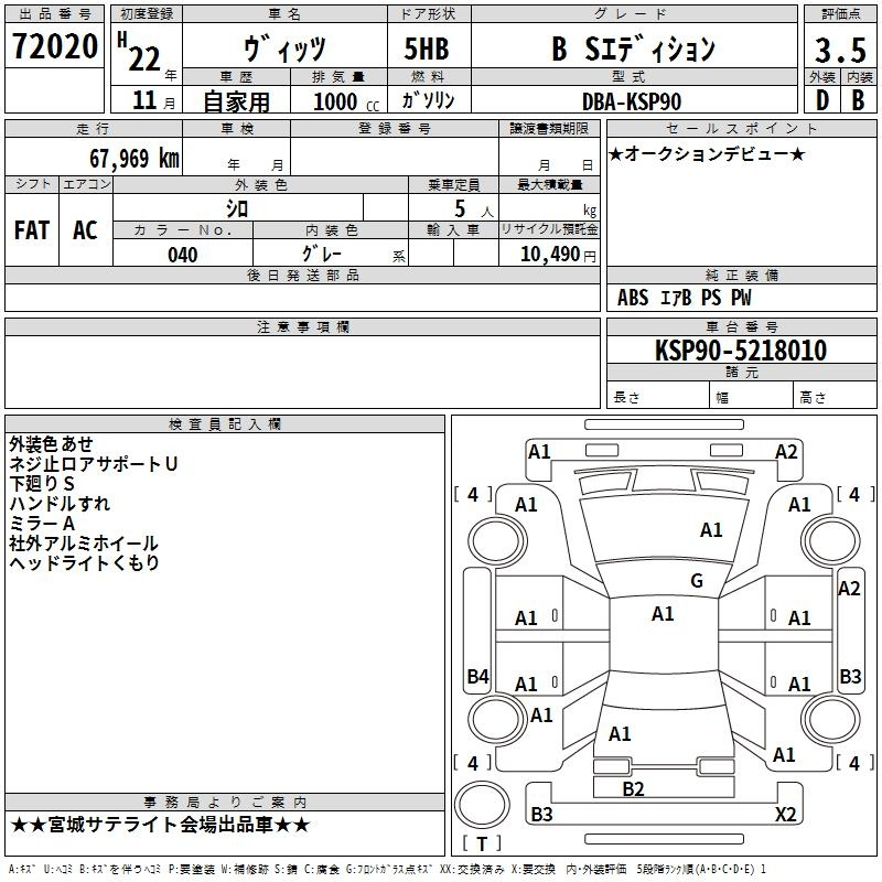 Toyota Vitz, 2010 года - Лот№72020 ★3.5