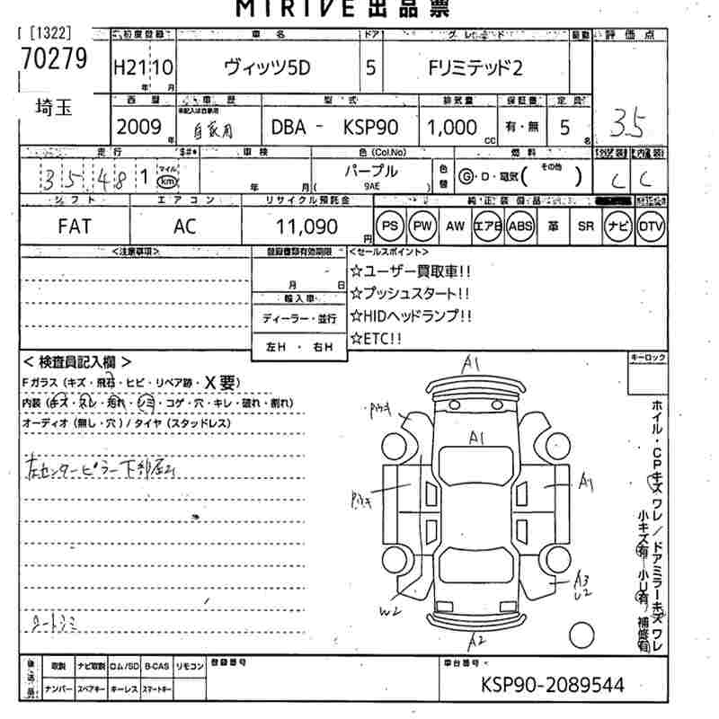 Toyota Vitz, 2009 года - Лот№70279 ★3.5