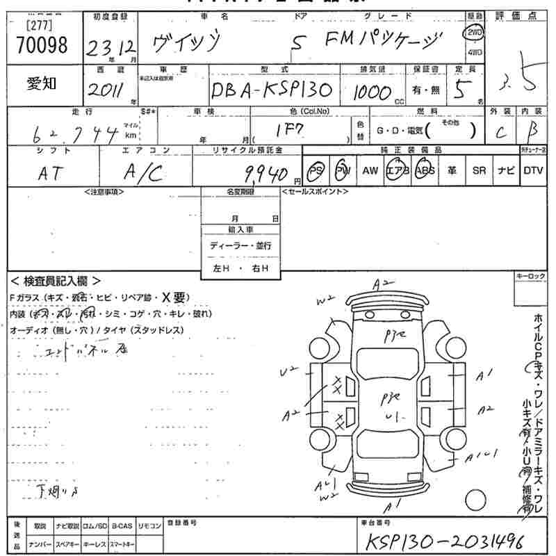 Toyota Vitz, 2011 года - Лот№70098 ★3.5