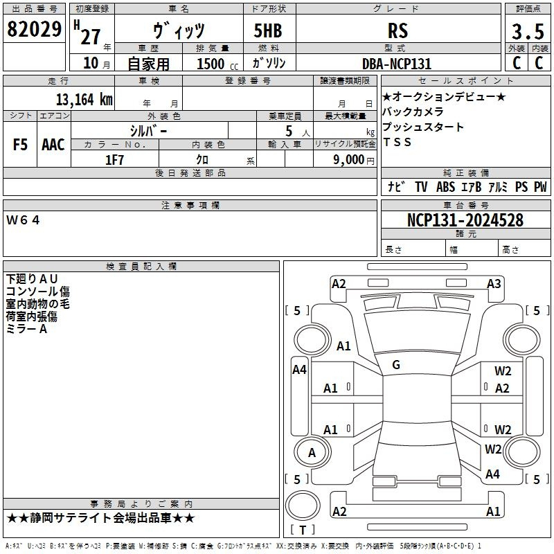 Toyota Vitz, 2015 года - Лот№82029 ★3.5