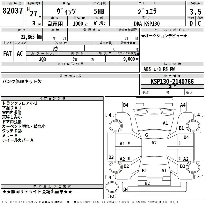 Toyota Vitz, 2015 года - Лот№82037 ★3.5