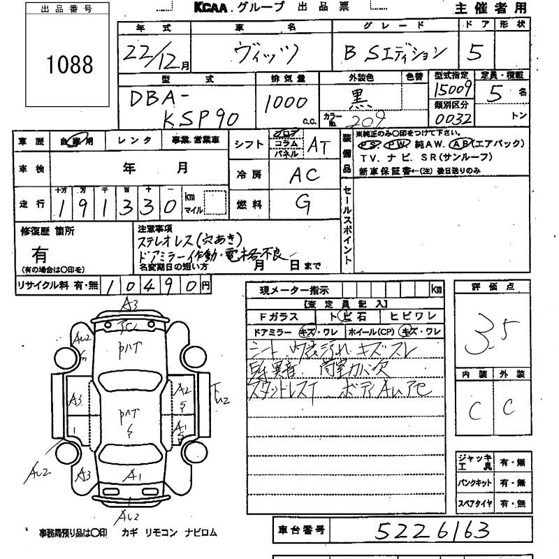 Toyota Vitz, 2010 года - Лот№1088 ★3.5