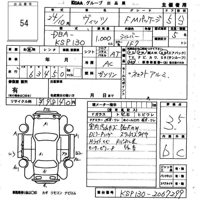 Toyota Vitz, 2012 года - Лот№54 ★3.5