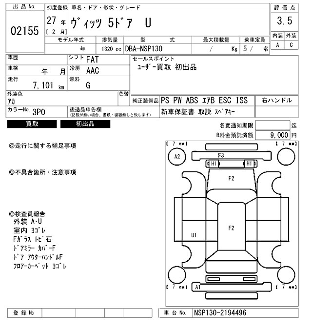 Toyota Vitz, 2015 года - Лот№2155 ★3.5
