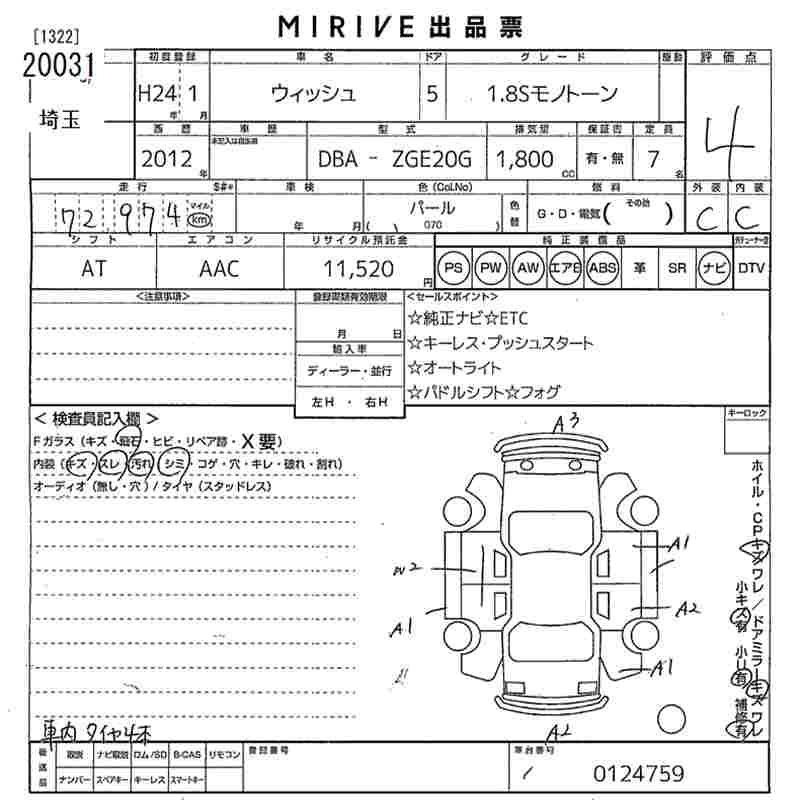 Toyota Wish, 2012 года - Лот№20031 ★4