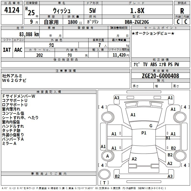 Toyota Wish, 2013 года - Лот№4124 ★R