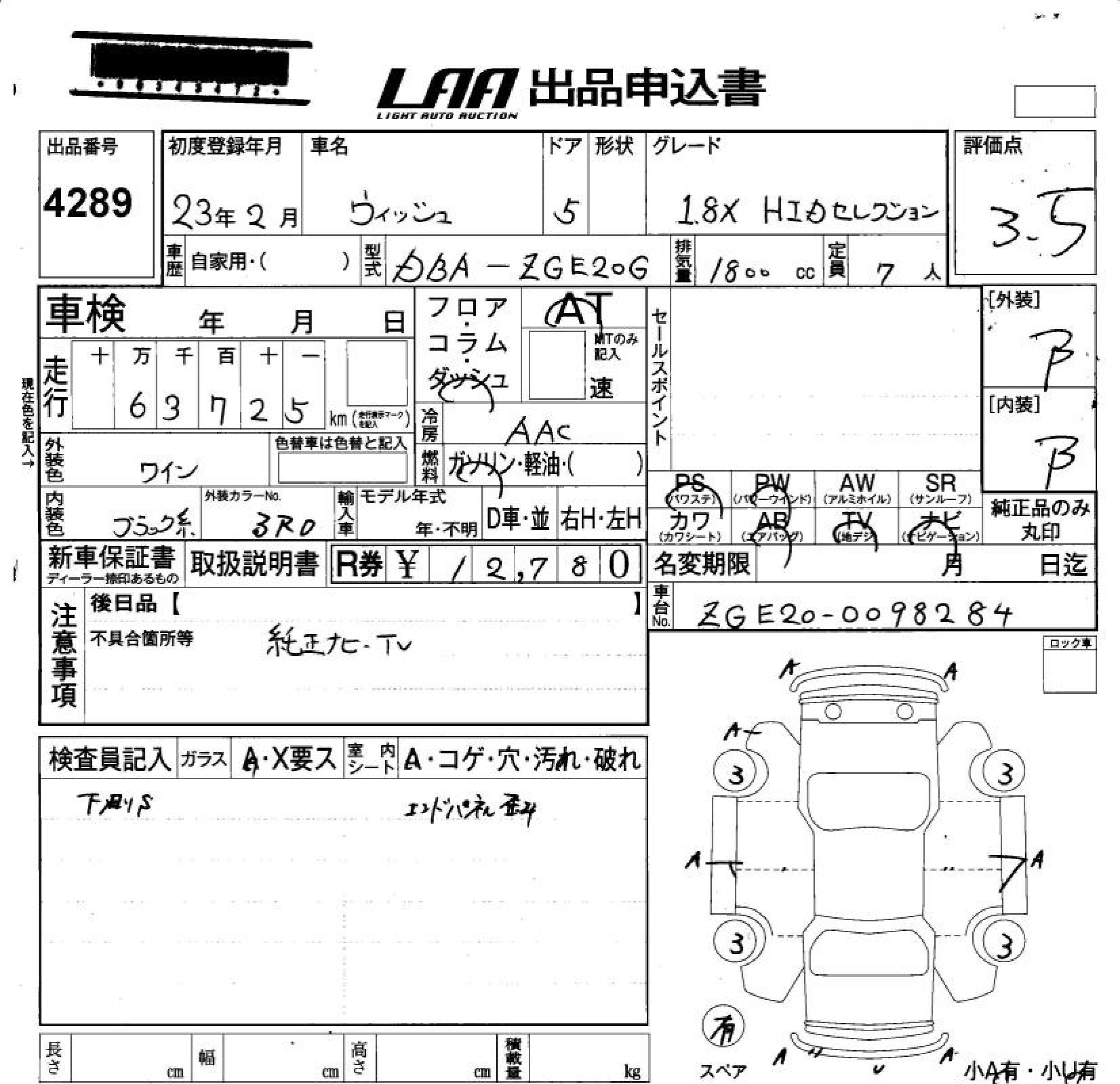 Toyota Wish, 2011 года - Лот№4289 ★3.5