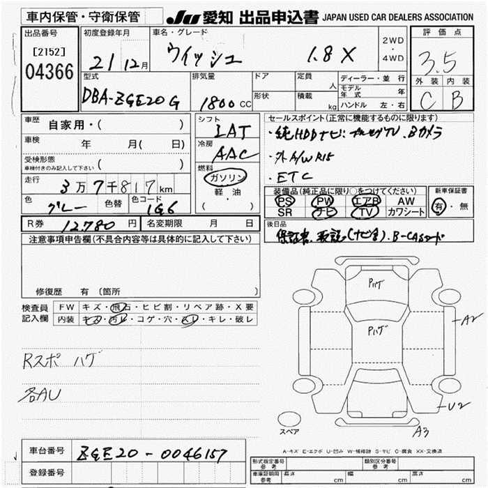 Toyota Wish, 2009 года - Лот№4366 ★3.5