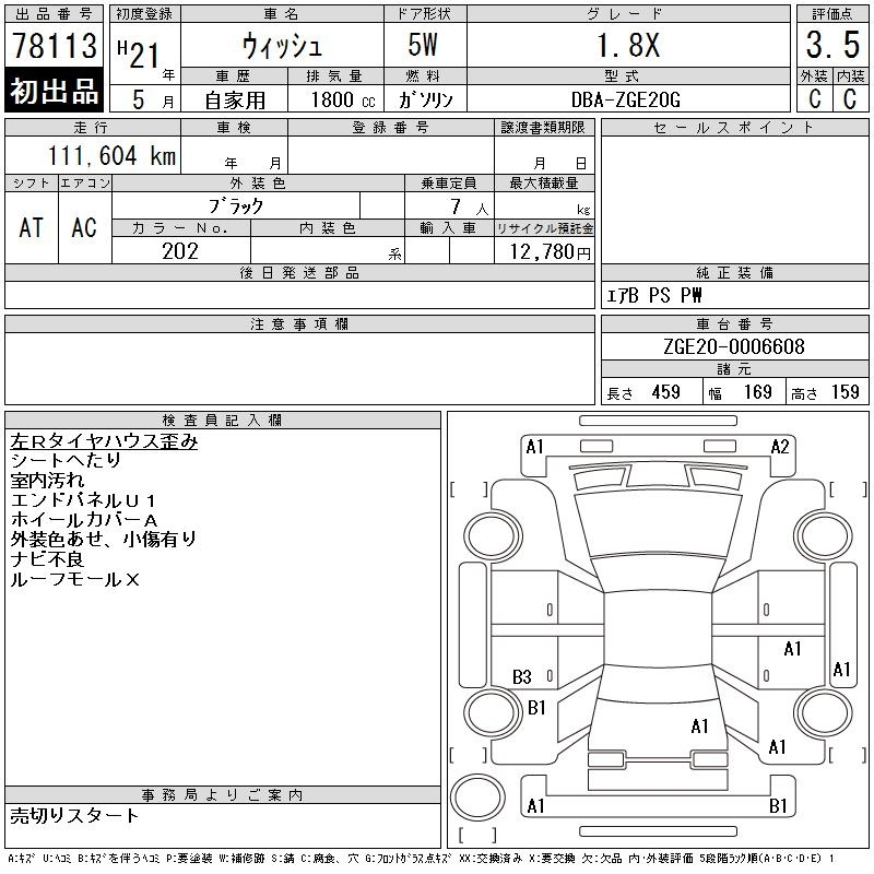 Toyota Wish, 2009 года - Лот№78113 ★3.5