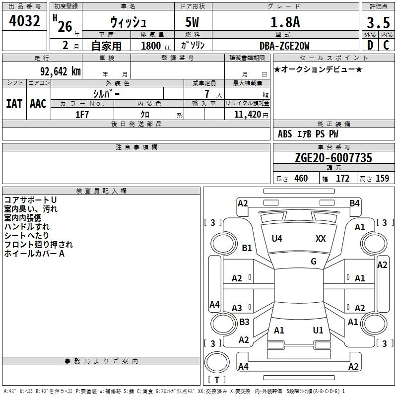 Toyota Wish, 2014 года - Лот№4032 ★3.5