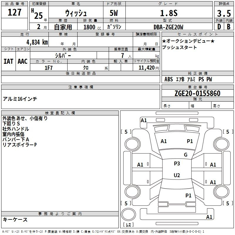 Toyota Wish, 2013 года - Лот№127 ★3.5