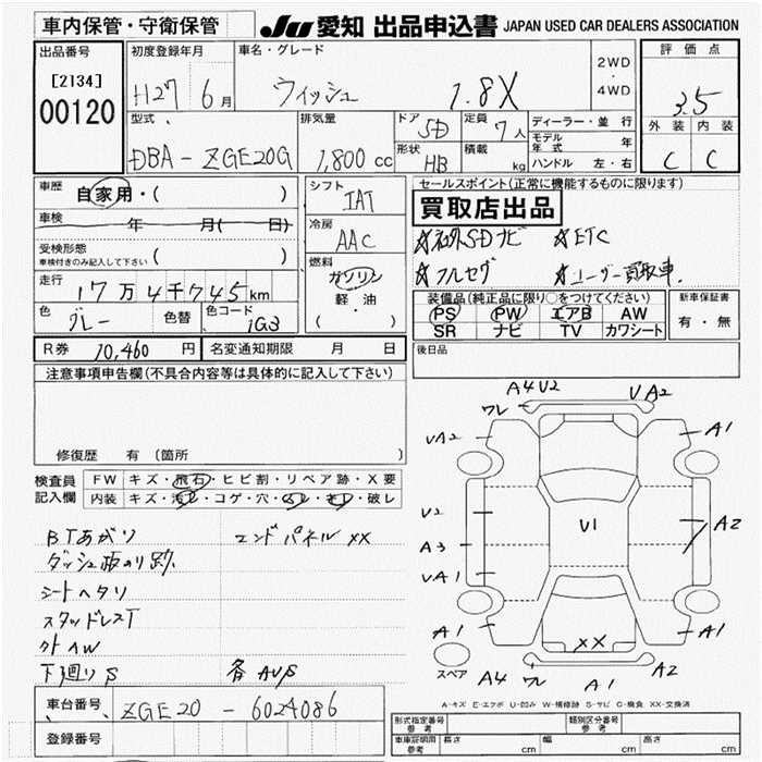 Toyota Wish, 2015 года - Лот№120 ★3.5