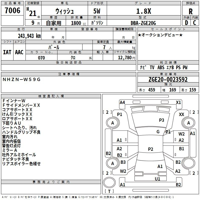 Toyota Wish, 2009 года - Лот№7006 ★R