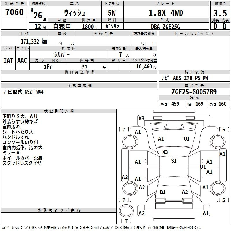Toyota Wish, 2014 года - Лот№7060 ★3.5