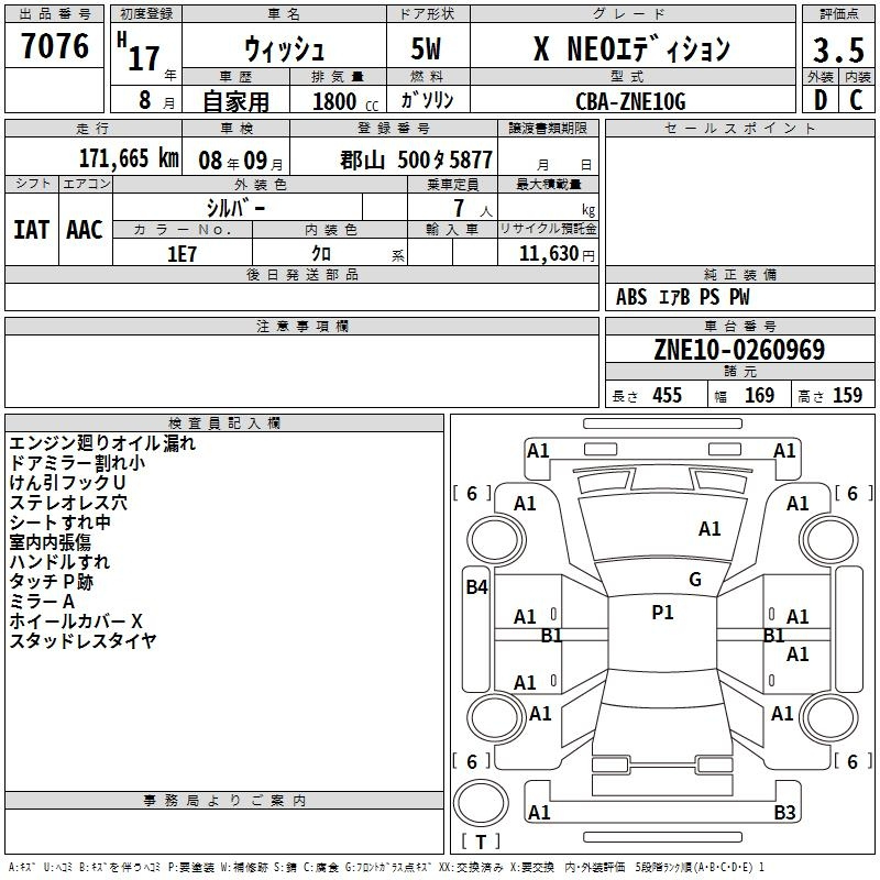 Toyota Wish, 2005 года - Лот№7076 ★3.5