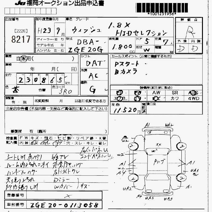 Toyota Wish, 2011 года - Лот№8217 ★R