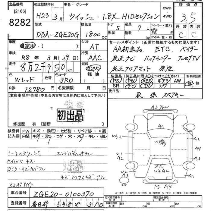 Toyota Wish, 2011 года - Лот№8282 ★3.5