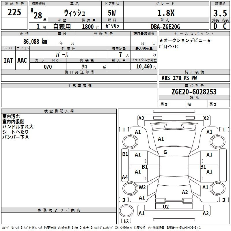 Toyota Wish, 2016 года - Лот№225 ★3.5